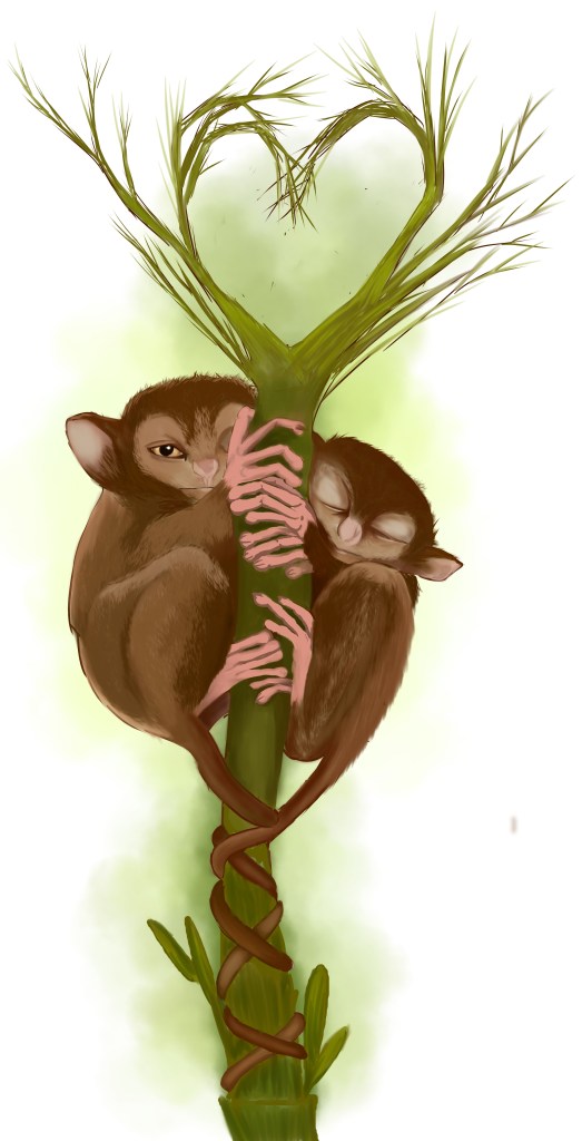 Humans can be complex and hard to predict. They live in ways their evolution hasn’t quite prepared them for, and that wonderful adaptive brain can sometimes malfunction as a result. This adaptiveness also means there are a lot of variations in their social networks, leading to misunderstands and sometimes aggression. Don’t get me started on their insistence on being imaginative. Tarsiers don’t need complex social groups. They don’t live in huge, sprawling communities. At most, you’ll live in small family groups like spectacle tarsiers (Tarsius spectrum). Other species live in pairs, and some spend most of their time in solitude, so you have some choices, but your social group will rarely be larger than 10, most of whom are family members.