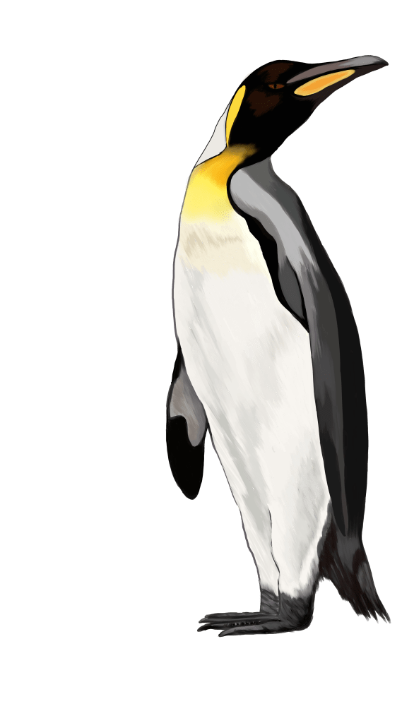 First, there is the finest of filoplumes, these small attachments to the contour feathers make for an excellent base layer. It’s also possible that they help penguin adjust and maintain their feathers through sensory signalling, but these secrets of sea dwellers have not yet been confirmed. The contour feathers themselves are stiff, (aiding hydrodynamics), oily, (for the waterproofing), and where all the colour is, (to aid looking fabulous). The afterfeather, together with the adjacent but separate plumules, make up the insulation layer. Your amazing Aptenodytes self has substance, style and function.